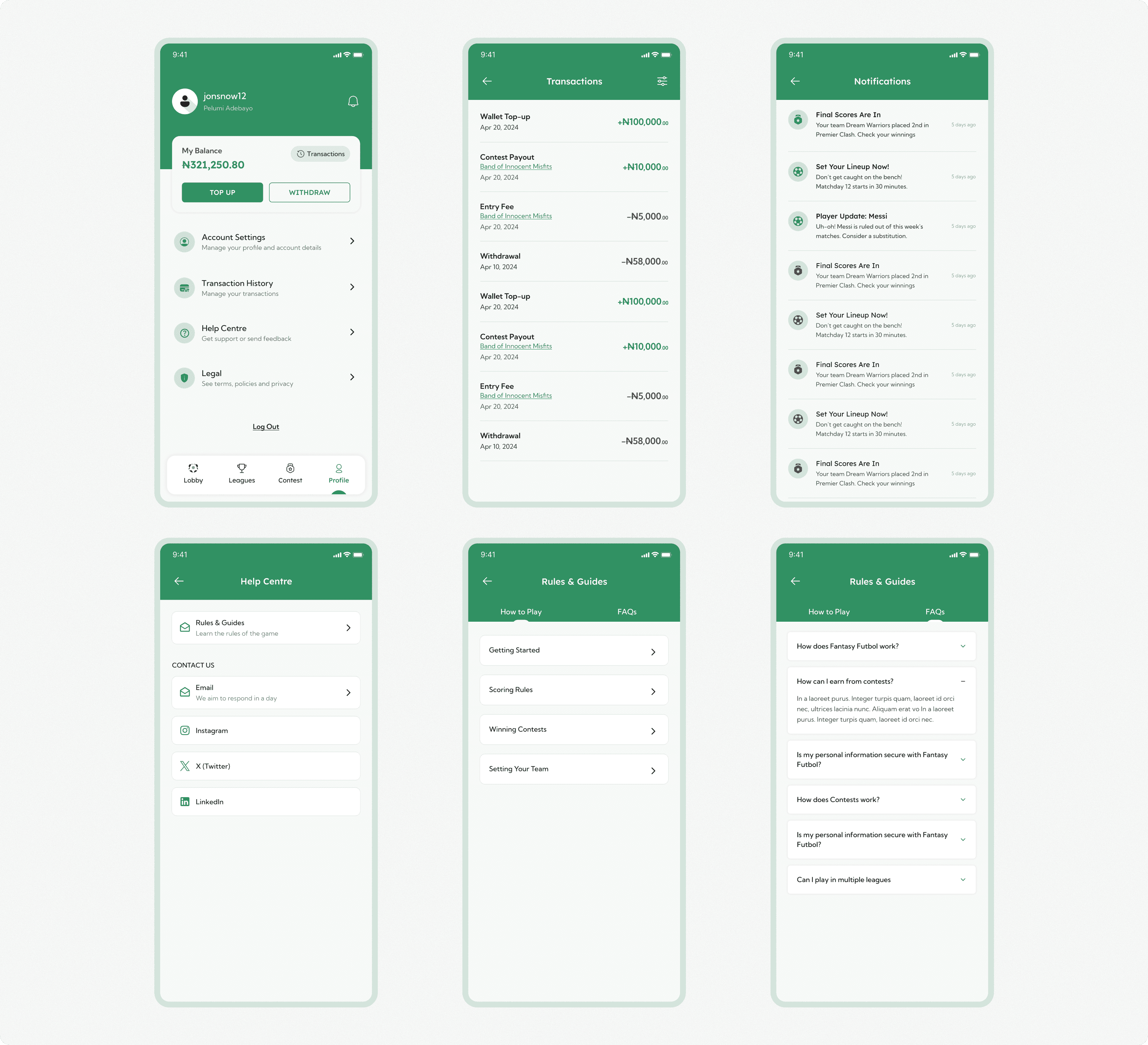 Fantasy Futbol was a project for a client building a real-money fantasy football platform for African users.